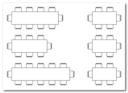 Imagine, por ejemplo, que se necesitara definir bloques para representar mesas de comedor como las mostradas en la figura siguiente. Lógicamente, las dimensiones de la mesa y su número de sillas serán diferentes en función de las personas que deba albergar, lo que obligaría a definir tantos bloques estáticos como modelos de mesas fueran necesarios.
